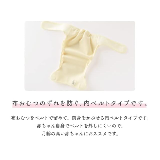 お腹の上でベルトを留めてカバーの前身をかぶせる内ベルトタイプ。赤ちゃんが活発に動き始めたら、ベルトを赤ちゃんが誤って外してしまう恐れがあるので月齢が高くなったら内ベルトタイプをお勧め!