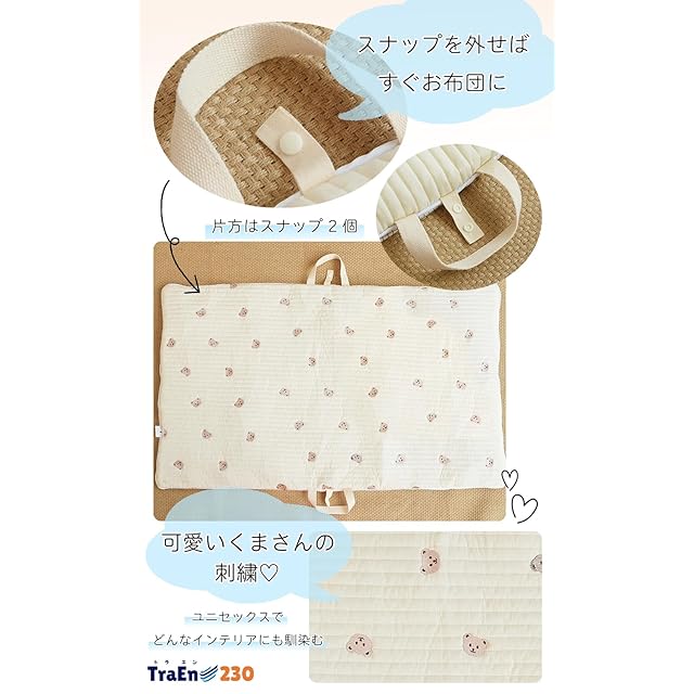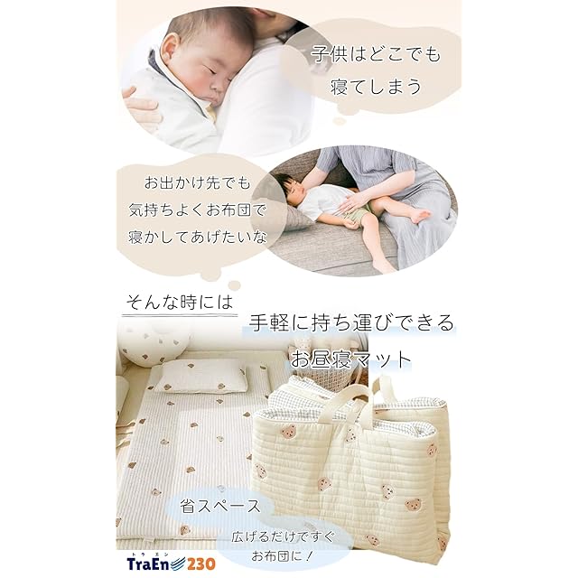 TraEn230 お昼寝布団セット 敷布団 ベビー用 保育園 敷き布団のみ 赤ちゃん お昼寝マット ベビー お昼寝布団バッグ (クマ)