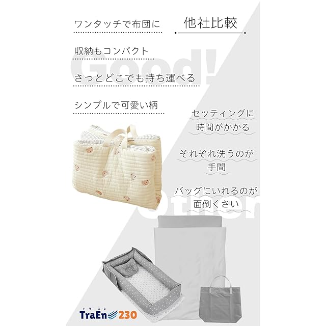 ✅【商品の強み】コンパクトに赤ちゃんの布団を持ち運べる♪水洗い可