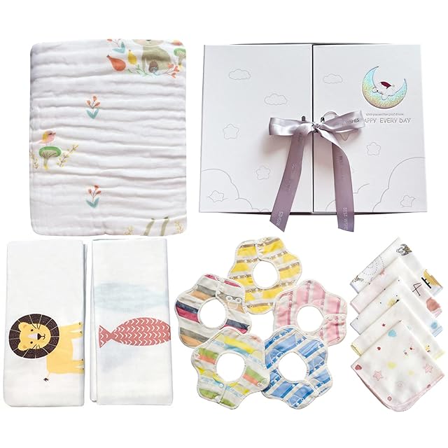 Joyancejt 出産準備 出産祝い 12点セット 女の子 男の子 新生児から6才まで おくるみ ガーゼ 天然綿100% ブランケット バスタオル よだれかけ ハンカチ 赤ちゃん ベビーギフト(ギフトBOX付き)