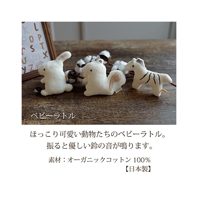 素材:アニマルラトル:オーガニック綿100% 日本製ウォッシュタオル:綿100% おむつ:オーガニック製