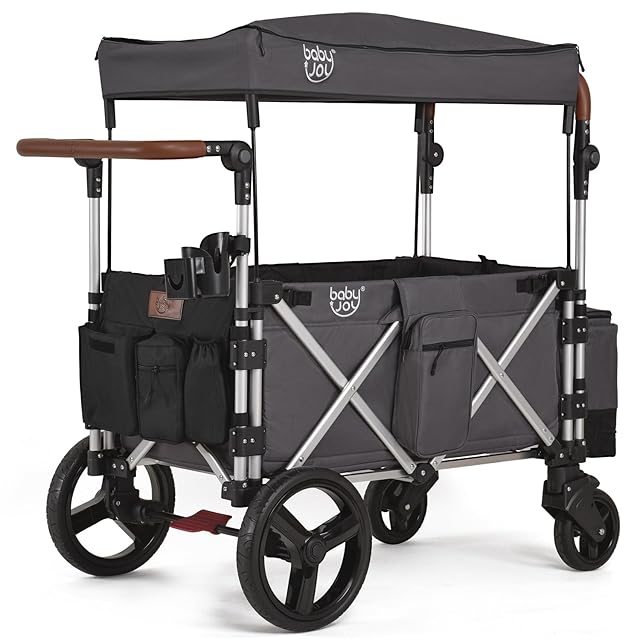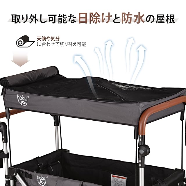 【組み立ても折りたたみも簡単】 このシートとキャノピー付きキッズワゴンは折りたたみ可能で、組み立ても簡単です。取り外し可能なシートとアンチUVキャノピーを自分で組み立てるだけなので、数秒で組み立てと分解ができます。