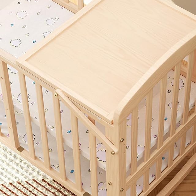 Areden ベビーベッド 木製 乳児用ベッド (製品サイズ:100x60x90CM)フェンス ベビーフェンス 堅固さ 耐久性 組み立て簡単 キャスター付き 高さ調節可能 多機能 転落防止 ベビーサークル シンプルでスタイリッシュ 新生児 出産祝い 様々な年齢の赤ちゃんに適し コンパクト (蚊帳付き)木の色