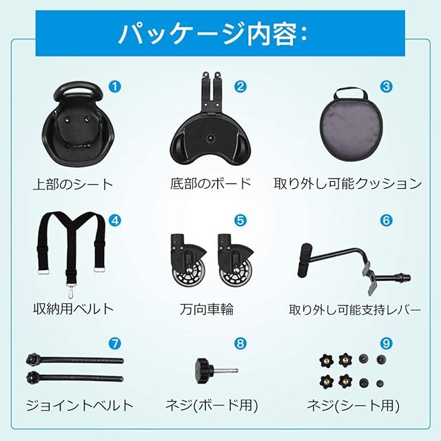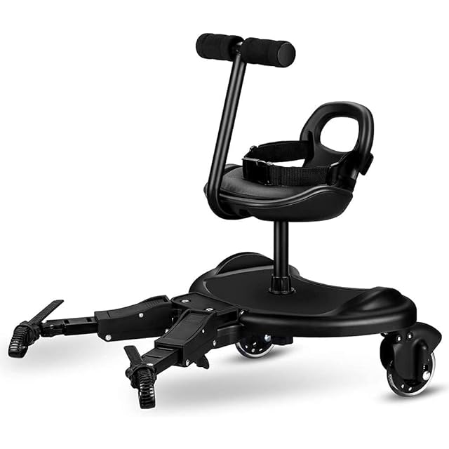 【高品質な材質&安全性アップ】ポリプロピレンとポリアミドで作られたベビーカーボードは、耐久性は非常に良いです。二つの万向輪は耐摩耗性が良くて製震機能もあるので、衝撃をやわらげることができます。ボード表面は滑り止めパッドを増やし、上部の座席は腰ベルト・滑り止めハンドルが付き、お出かける時に安全性アップ!