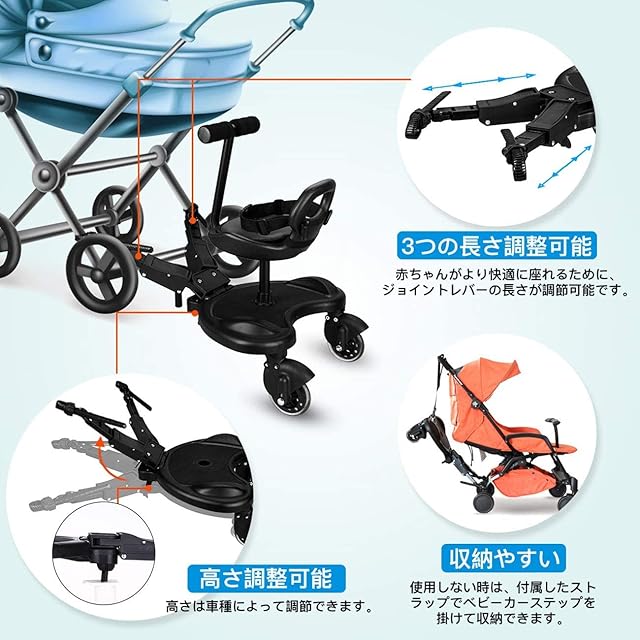 【様々なシーンで活躍】スーパーマーケット、公園、動物園、遊園地など様々なシーンで大活躍用です。このベビーカーステップはSGSやCPCなどの国際的な安全認証に合格しております。1年の品質保証も付き、万一品質上の問題がある場合は、お気軽にメールでご連絡ください。