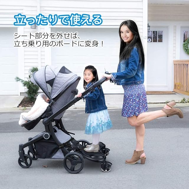 【二つ子供が出かける便利】大人一人が二つ子供一緒に連れてお出かけるのは大変です。ベビーカーに2-in-1ベビーカーボードを取り付けるだけで、二つ子供と一緒にお出かけるのはとても便利です。