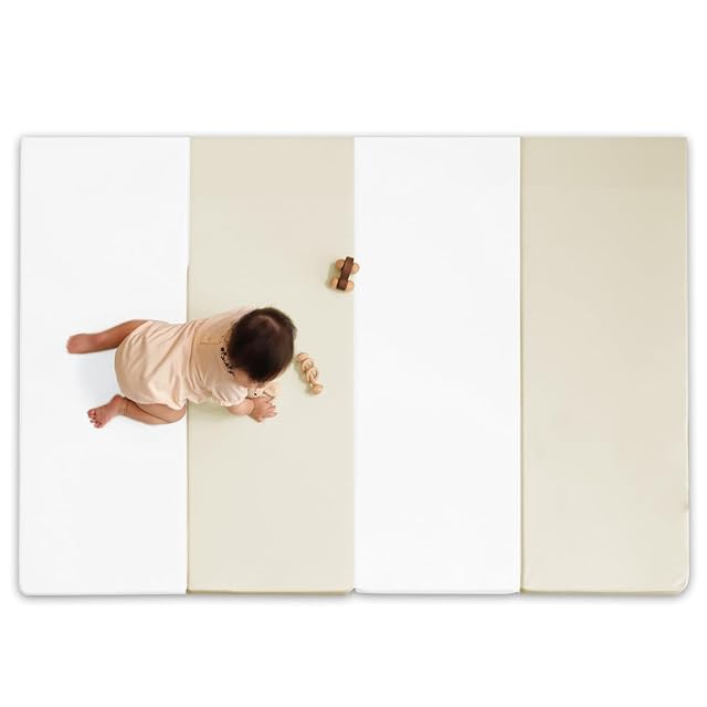 (ケラッタ) プレイマット 折りたたみ 赤ちゃん 1級防音 防水 厚手 (ベージュ×ホワイト, 160×120)