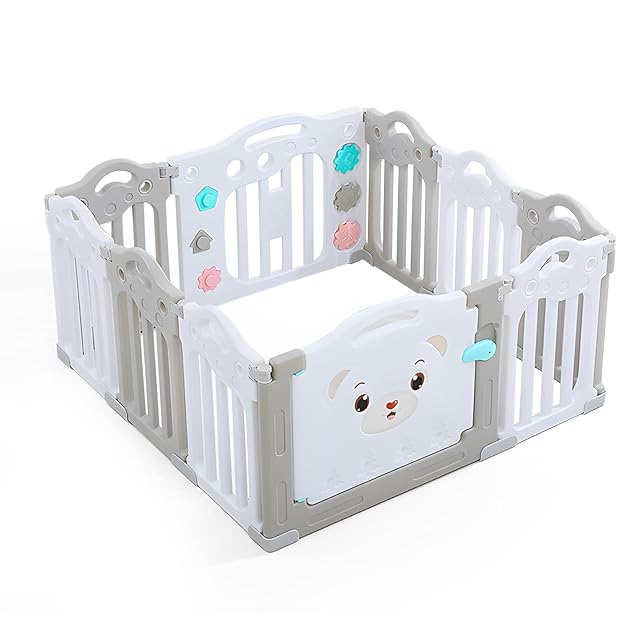 SPIEEK ベビーサークル 折りたたみ 人気 大きめ ベビーフェンス 赤ちゃん サークル 子供用 赤ちゃん柵 室内遊具 おもちゃ 扉付き 10枚セット 出産祝い プレゼント(外寸115cmx115cmx60cm)【ホワイト×グレー】