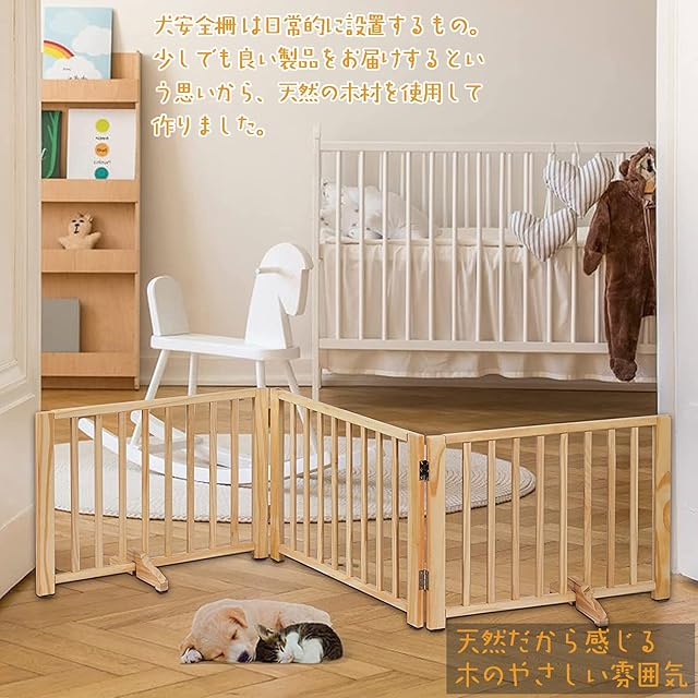 ●インテリアになじみやすい木製 ・ワンちゃんの安全と飼い主さんのお部屋へのこだわりを両立するナチュラルな雰囲気のパイン材。暖かみのある木目、なめらかな質感です。