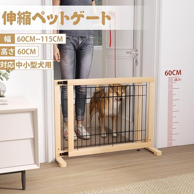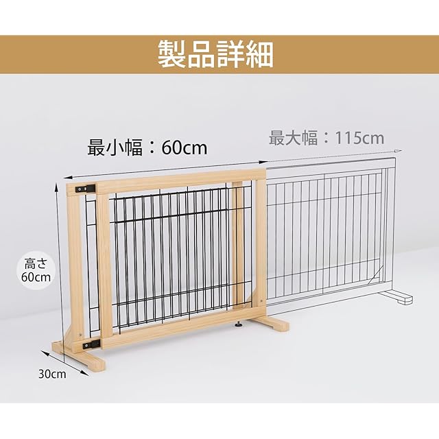 【調整可能、様々な場所に対応】:ペットフェンスの幅は、60cmから115cmまで拡張可能です。この範囲内でこの製品を使用できます。玄関、キッチン、階段など、さまざまな場所に置けます。