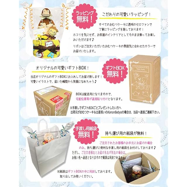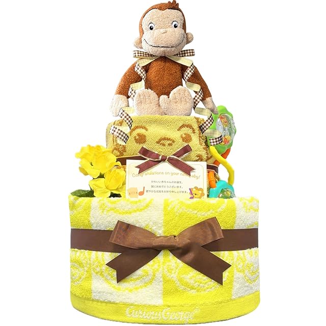 KanonBabys おむつケーキ 男の子 女の子 おさるのジョージ 出産祝い 2段 Sサイズ 3001