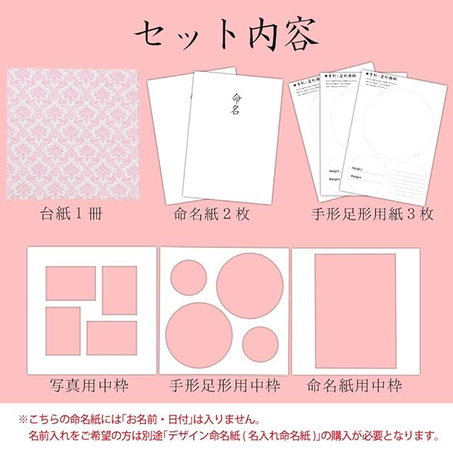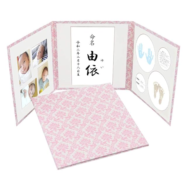 中枠3枚(命名書用/L判写真4枚用/手形・足形用)・命名紙2枚・手形・足形用紙3枚付き 日本製