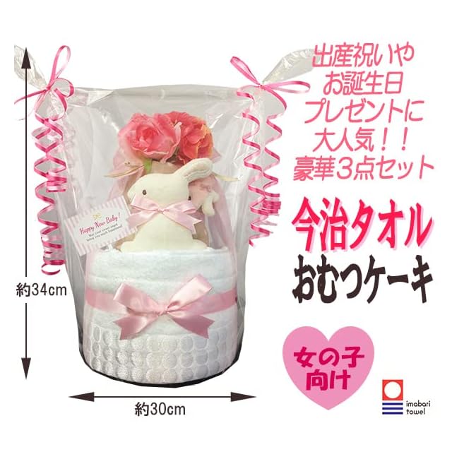 出産祝いに最適な今治タオルのおむつケーキ: 世界的に評価されている今治タオルを使ったおむつケーキは、赤ちゃんへの特別な出産祝いとして人気があります。やわらかさと吸水性に優れた今治タオルは、女の子の出産祝いにぴったりです。
