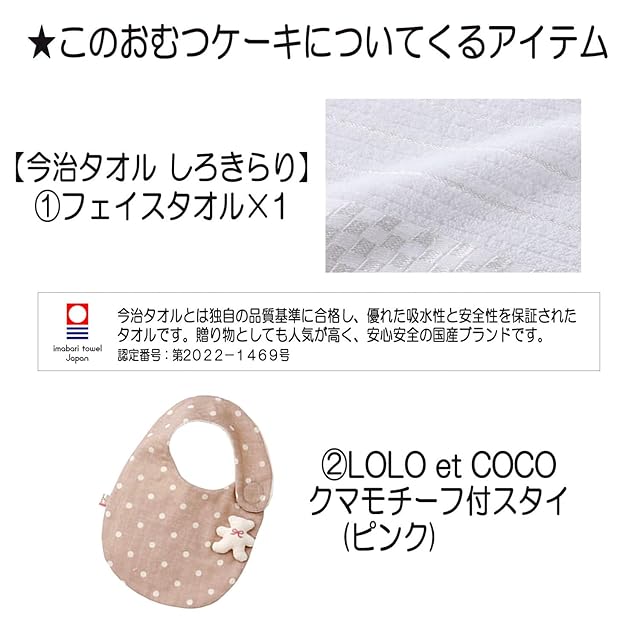 高品質な今治タオルとおむつのセット: 今治タオルは、その柔らかさと優れた品質で赤ちゃんの敏感な肌に安心して使用できるため、特別な出産祝いに最適です。おむつケーキにも高級感をプラスし、実用性とデザインを兼ね備えた一品です。