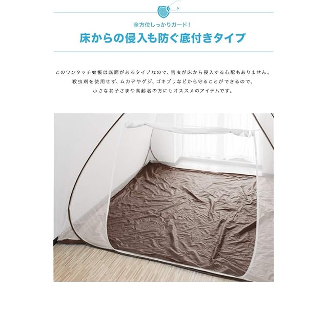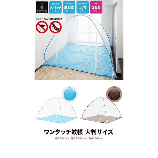 ottostyle.jp 蚊帳 かや ワンタッチ 底生地付き 超ビッグサイズ 【ダークブラウン】 幅250cm×高さ160cm 底からの虫の侵入も防ぐ 虫除け モスキートネット 蚊 ムカデ対策 ベビー