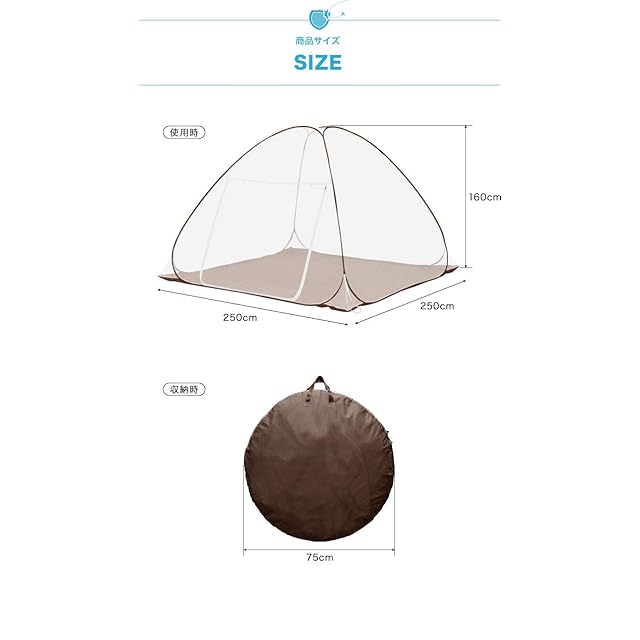 サイズ (約)幅250cm×奥行250cm×高さ160cm ※収納時:(約)75cm×75cm