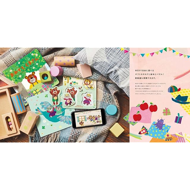 カタログギフトの他に絵本や歌動画、パズルがセットになった、ベビーとそのご家族のためのスペシャルギフトセット。世界観が人気の「おめでとセレクション」オリジナル!このギフトだけの特別な絵本と歌動画、木のパズルが子どもたちの時間を彩ります。 2021年4月のリニューアルにて、お誕生日がテーマのオリジナル穴あき絵本に、絵本を歌とアニメーションで表現したオリジナル歌動画、また「おめでとセレクション」に登場するキャラクターの天然木パズルがセットになっています。出産のお祝いや、子どものお誕生日にぴったりなママ・パパ目線で“本当にほしいもの”や“子どもが笑顔になるもの”をあつめてお届けします。※交換商品のお届けは、日本国内に限らせていただきます。