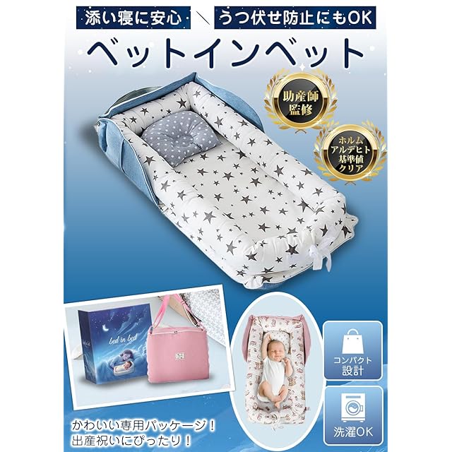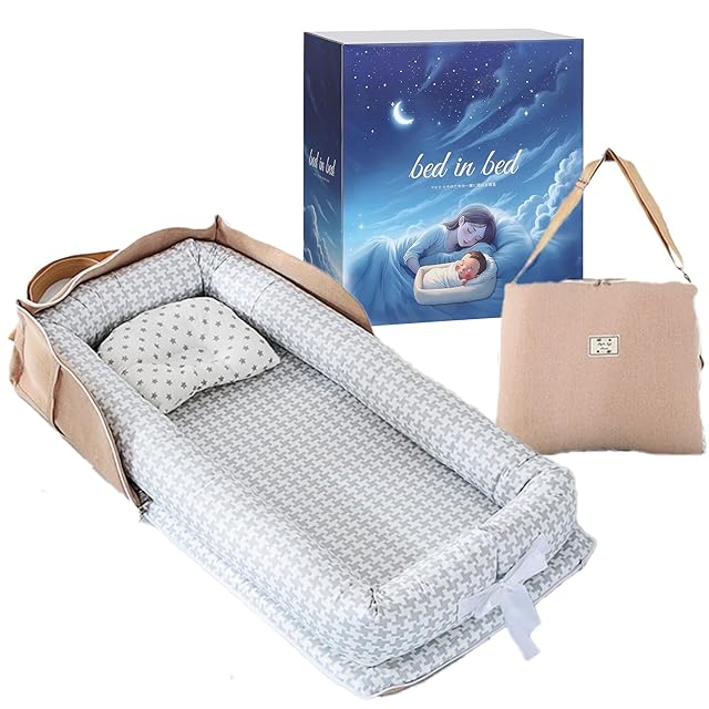 【助産師監修】 ベッドインベッド ベビーベッド ベットインベット新生児 携帯型 赤ちゃん 折りたたみ 枕付き コンパクト添い寝 持ち運び 洗濯可能 折り畳みベッド 出産祝 AmberWave (ベージュ×チェック)