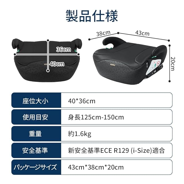 【商品仕様】サイズ:42.5*37.5*19.5cm 使用対象:身長125cm~150cm まで長期にわたり使用可能。新しいヨーロッパ安全基準ECE R129/03適合品。
