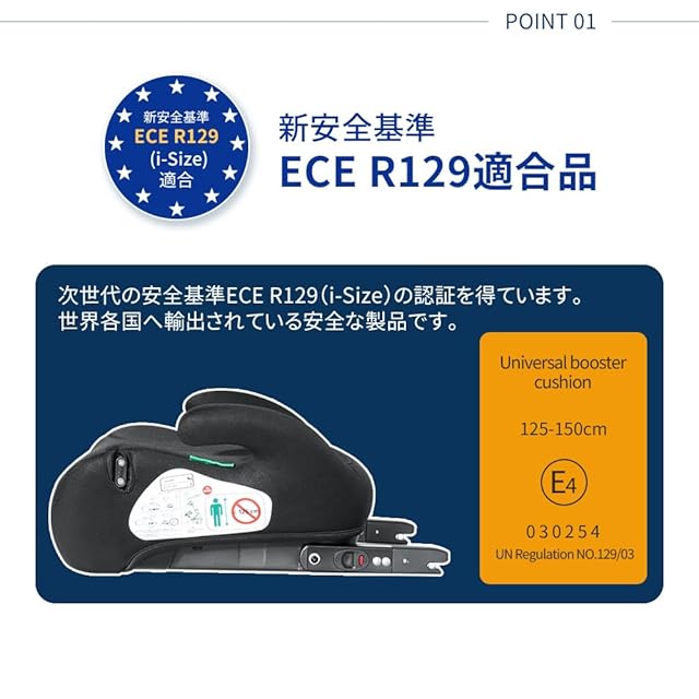 【新基準「R129」適合でより安全に】従来の安全基準「R44」から「R129」へ、子どもをより安全に守る、最新安全基準「R129」適合。取り付けも取り外しも簡単で、お子様の気分に合わせてすぐにシートを変更できます。 (ISOFIX固定+シートベルト固定なのでより安全、ISOFIXなしでシートベルト固定だけでもOKです。)