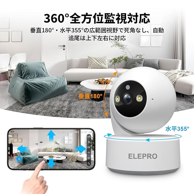 2025新登場【800万画素・泣き声感知・2G/5GWiFi両対応】ELEPRO 見守りカメラ ペットカメラ カラーナイトビジョン PTZ 自動追尾 スマホで見れる 動体検知 プッシュ通知 音声やライト警告)遠隔で見れる 防犯カメラ セキュリティカメラ 監視カメラ ベビーモニター ベビーカメラ 室内用ネットワークカメラ 玄関カメラ ワイヤレスカメラ ホームカメラ