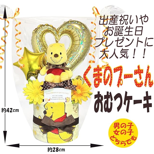 赤ちゃんのための優しいプーさんのオムツケーキ:赤ちゃんのデリケートな肌に優しい高品質なおむつを使用しており、男の子や女の子どちらにもぴったりのギフトとして選ばれています。プーさんのオムツケーキは、ほのぼのとしたキャラクターが、赤ちゃんの毎日を楽しく彩ります。