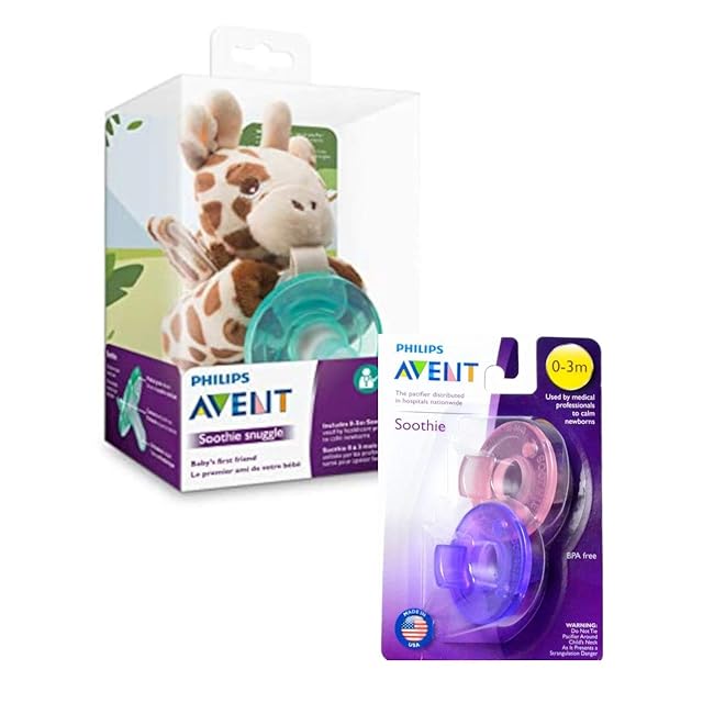 【セット品】Philips Avent おしゃぶり きりんさんのおしゃぶりホルダーセット+フィリップス Avent Soothie Pacifier おしゃぶり 0-3ヶ月用 2個パック