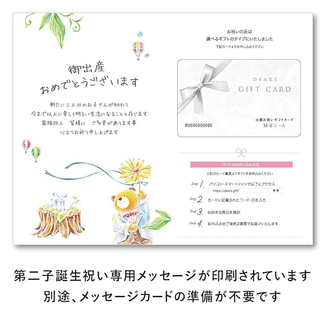 出産祝い専用ギフトカード 5800円コース【第二子用】 お祝いメッセージ付き 出産祝い ベビーギフト 男の子 女の子 カタログギフト
