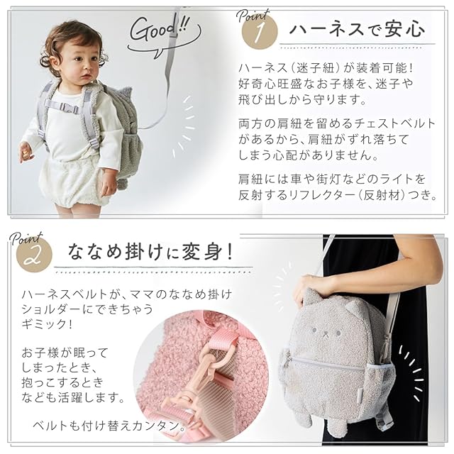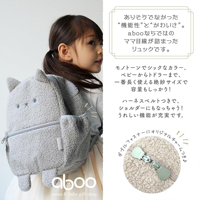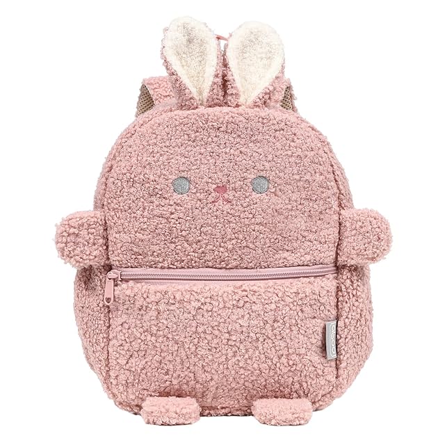 [aboo] アブー 3WAYふわふわベビーリュック ピンク うさぎ ハーネス付き ショルダーバッグ 長く使える ポケット沢山 ボトルホルダー 背面メッシュ ネームホルダー かわいい どうぶつ 反射材つき 一升餅 (うさぎ)