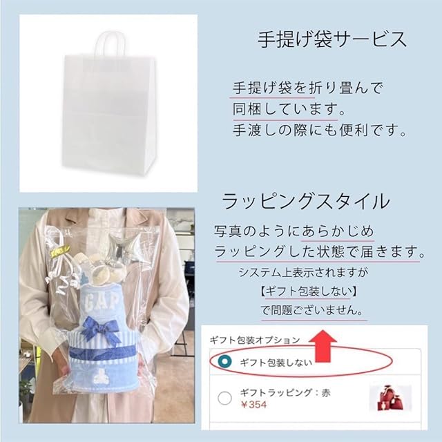 実用的なスタイとウォッシュタオルがセットになったGAPのおむつケーキ