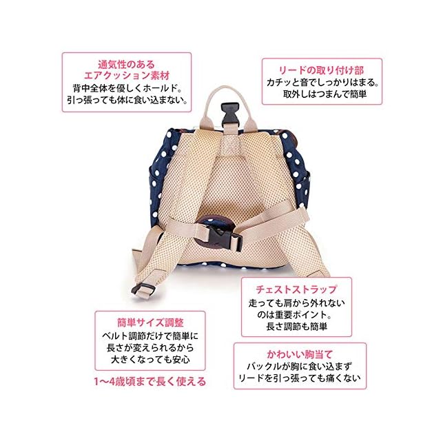 可愛いリュックに子供用ハーネスが付いています。ハーネスはリュックから外せますのでベビーリュック(赤ちゃんリュック)としても使えます。男の子・女の子どちらにもかわいい色を揃えました。