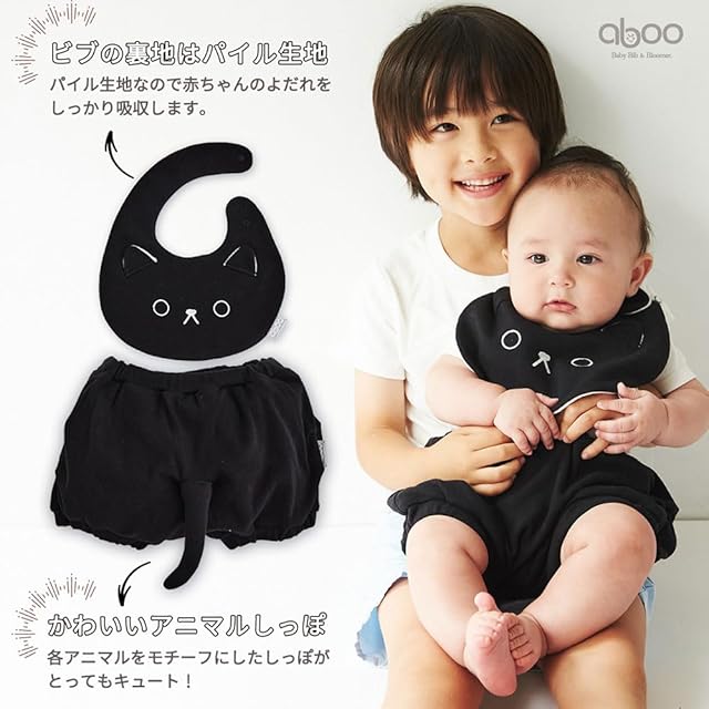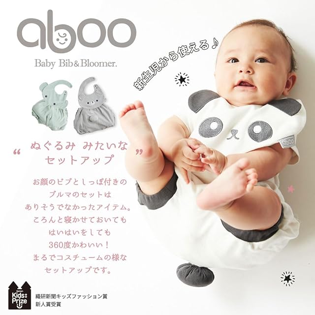 [aboo] アブー ビブ&ブルマセット よだれかけ 長く使える 肌ざわりが優しい しっぽつき ベビー服 どうぶつのお顔 セットアップ 赤ちゃん ギフト 箱入り 新生児 出産祝い 洗濯機OK (ぞうさん)
