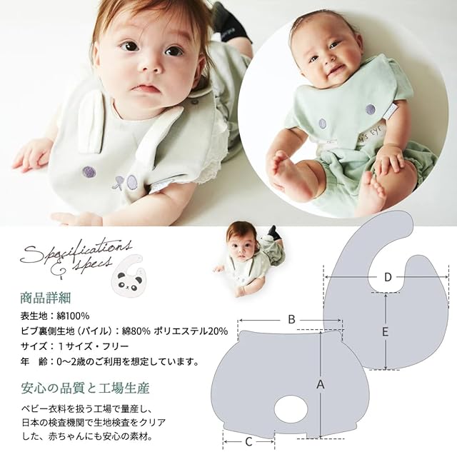 ビブ裏側生地(パイル):コットン80% ポリエステル20%