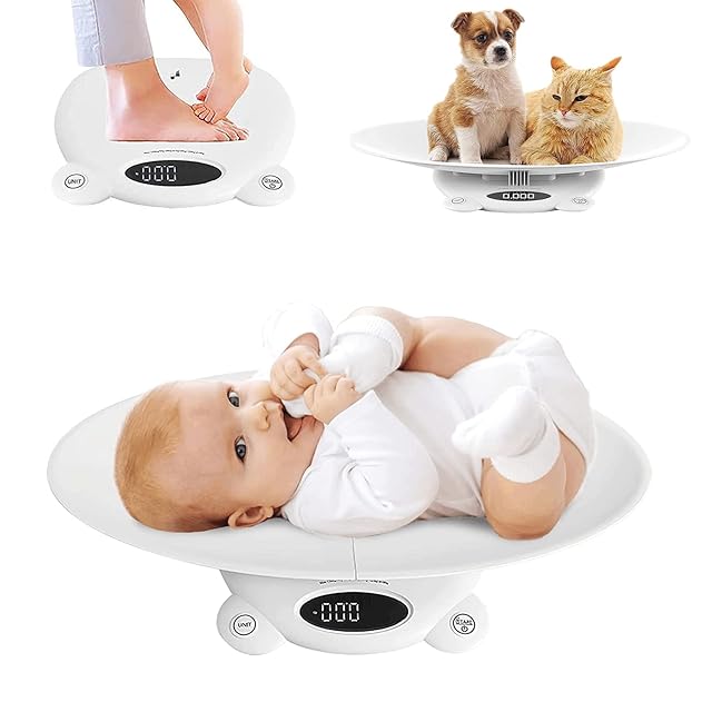 MQUPIN ベビースケール 赤ちゃん 体重計 5g単位 風袋引き機能 単位変換 高精度 受け皿付き 薄型軽量 ベビー体重計 授乳 赤ちゃん 体重計 ベビー スケール 新生児用 出産祝い 最大荷重120kg 凹面デザイン ペット体重計 育児 新生児/大人/犬/猫/秋田犬/柴犬/うさぎ用