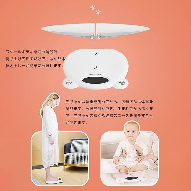 ★急速分解設計:持ち上げて押すだけで、はかり本体とトレーが簡単に分離します。分離設計ができ、生まれてから歩くまで、赤ちゃんの様々な段階のニーズを満たすことができます。