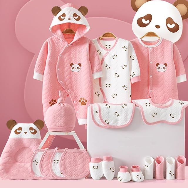 [Puhang] ベビー服 新生児服 ベビーギフトセット 出産祝い 出産準備 20点セット ロンパース 女の子 男の子 肌着 おくるみ ベビー帽子 手袋 靴下 よだれ掛け ハンカチ 枕 プレゼント天然綿100% 柔らかい ギフトボックス付き 0~3ヶ月 ピンク