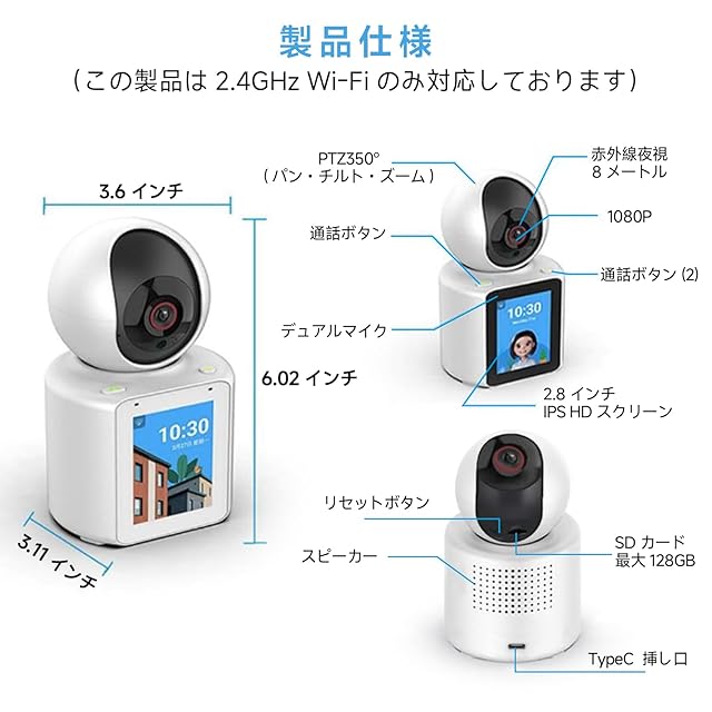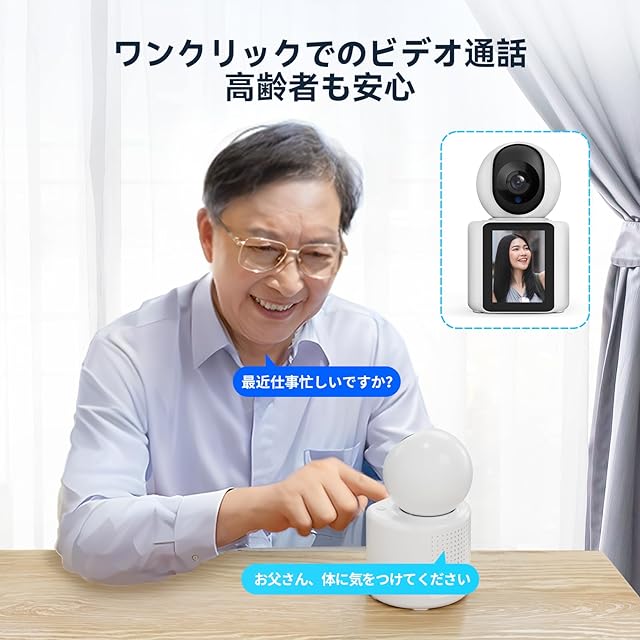 【ワンタッチ通話】 - 携帯電話にアクティブコールを発信できるこのカメラは、緊急時に高齢者や子供たちに便利なソリューションを提供します。カメラの電話ボタンを押すだけで、簡単に家族と連絡を取ることができます。この機能は特にスマートフォンを持っていない親や子供に理想的で、ビデオ通話を通じていつでもつながることができます。