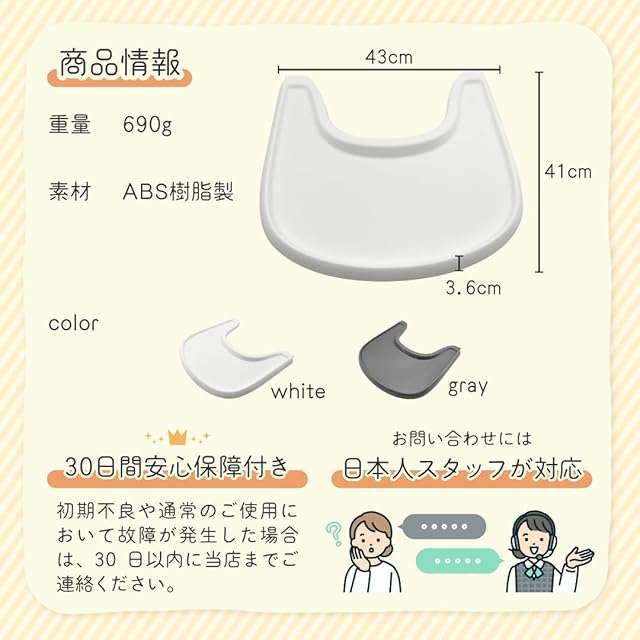 ✅特長 ・トリップトラップベビーセット専用設計トレイ ・お子様の食事タイムを快適に彩る実用的なサイズ(43×41×3.6cm) ・耐久性に優れたABS樹脂製で、使いやすい5kg耐荷重 ・純正品と同等サイズで使い勝手抜群 ・お手入れ簡単、衛生的な設計