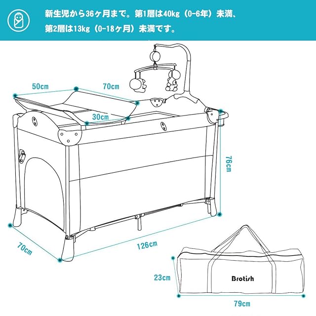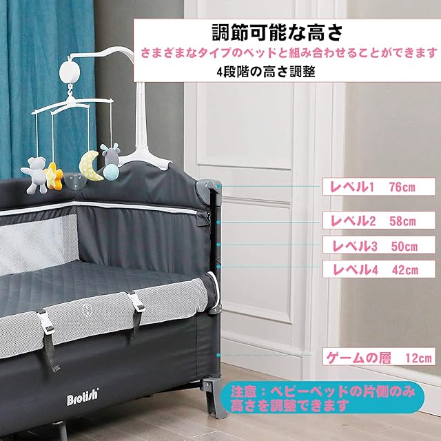 セット内容:本体×1・キャリーバッグ×1・おむつ替えテーブル×1・バシネット×1・サイド収納ラック×1・おもちゃホルダー×1・長い棒×3・短い棒×3 音楽、回転、光、振動の快適機能を備えたヒト化ベッドベル。緊密な協力のために、プラスチック製の鋼棒サポート型蚊帳を修正しました。保管袋は保管が簡単で、防塵です。 保管や旅行に便利です。