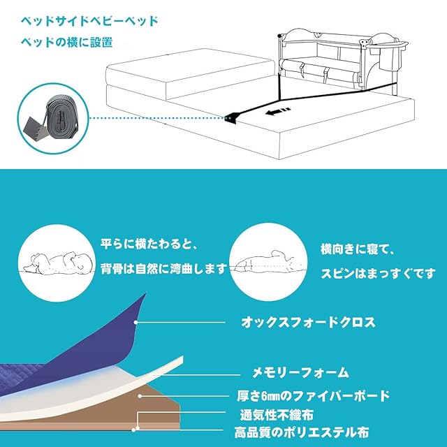 組み立て簡単・コンパクト収納、軽量 パイプを接続するだけの簡単な構造で女性でも一人で組み立て可能です。使わないときはコンパクト収納できます。パイプ+メッシュの軽量素材なのでとても軽く掃除のときも片手で持ちあげられます。 コンパクトに折り畳み可能(収納袋付き)、旅行先、帰省先等に持ち運び、お子様のベッドとして、プレイヤードとして使えます♪適切な硬さのマットレスで、赤ちゃんがぐっすり快適に睡眠を取れます♪