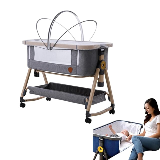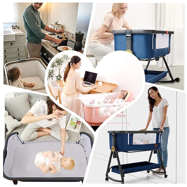 Esluveベビーベッド 折りたたみ 持ち運び ベビーベッド 添い寝 高さ調整 ベビーベッド コンパクト ベビーベッド 簡易 ベビーベット 移動式 組立簡単 ベビーベッド キャスタ付き ゆりかご 0~36月 出産準備[一年メーカー保証]