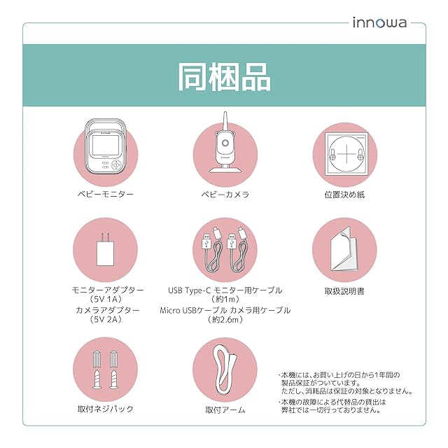 innowa ベビーモニター ワイヤレス設定不要 FHSS お知らせ機能 300万画素 取付アーム 【Amazon.co.jp限定】