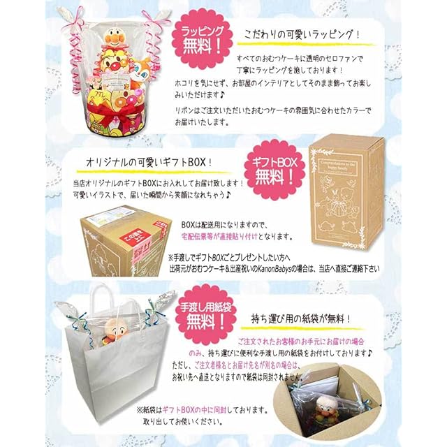 KanonBabys おむつケーキ 女の子 アンパンマン 出産祝い 3段 Sサイズ 4002