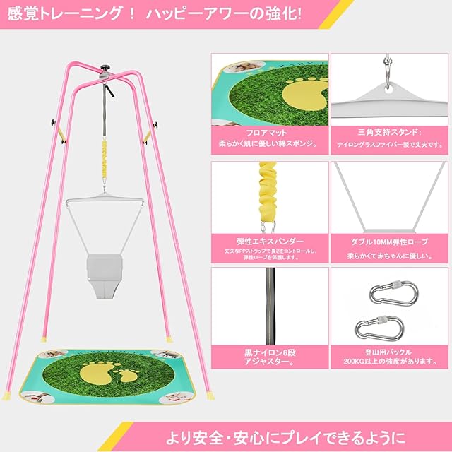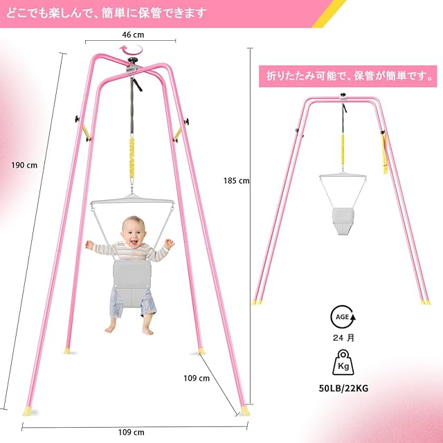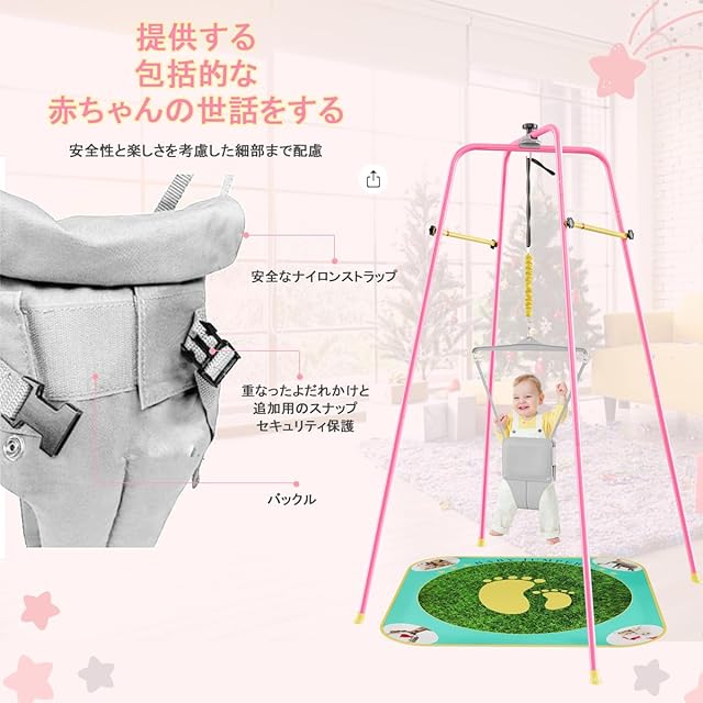 【高品質で安全】:当社のベビージャンパーは丁寧に作られています。 頑丈なスチールパイプ、安全なロックカラビナ、高品質の滑り止めゴム足、快適なコットンシートでアップグレードしました。 お子様は自信を持って飛び跳ねるのが大好きになるでしょう。