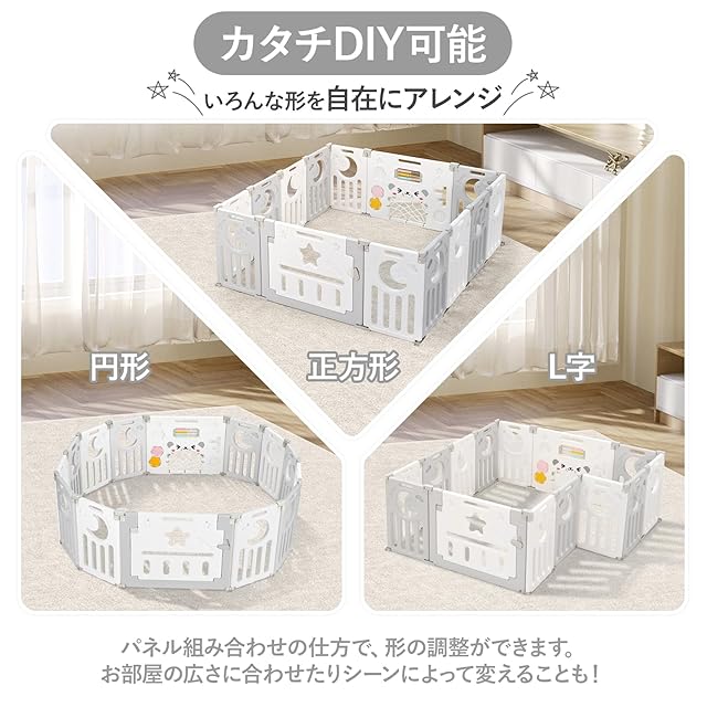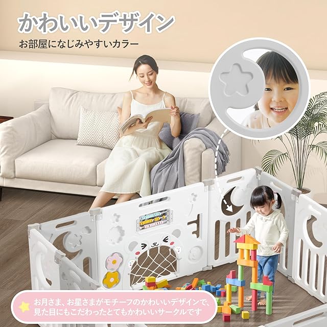 【こんな時にお使いください】家事や休憩中に、在宅ワーク時に、ステイホーム中に。赤ちゃんを入れておくことで行動範囲を制限したり危険物から遠ざけることができます。お子様専用のキッズコーナー作りに大活躍。誕生日、出産お祝いプレゼントとして、こどもの日のギフトとしても最適です。
