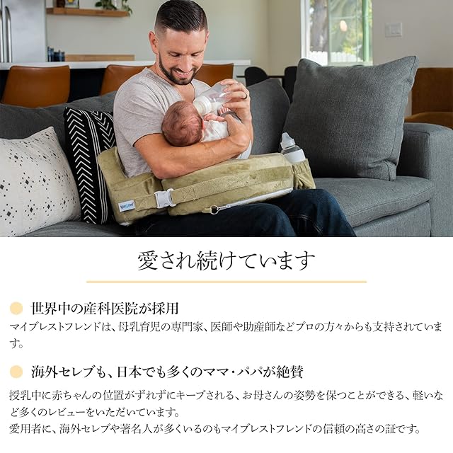 My Brest Friend はアメリカで一番売れている授乳クッションです。日本をはじめ世界の700以上の病院で愛用され、33カ国以上で販売されている独創的な授乳クッションです。優れた機能性と画期的なデザインで、キム・カーダシアンやマドンナ、ドリュー バリモア、アリッサ ミラノなどの数多くのアメリカの著名人が公認で愛用しています。また、アメリカでは助産師 助産院 産婦人科 などで最も多く使われている授乳クッションです。※奥様への プレゼント や自分へのごほうび、 出産祝い の 贈り物 やギフト にもどうぞ。 ※ 人気 授乳用まくら 、 おすすめ ナーシングピロー 、 かわいい ベビークッション 、 洗える カバー 、 かため 授乳用枕 、 へたりにくい へたらない 授乳用ピロー 授乳ようクッション