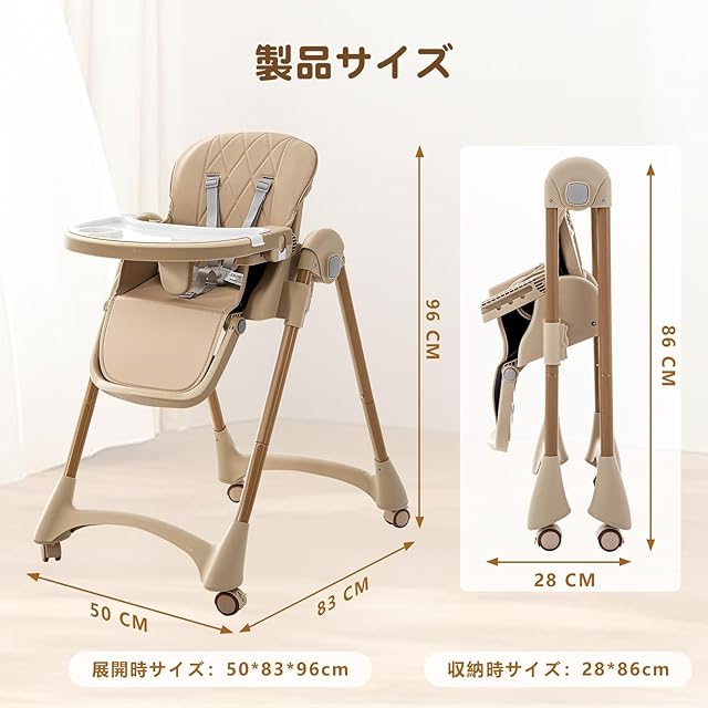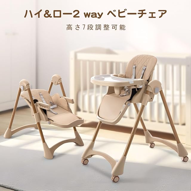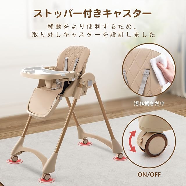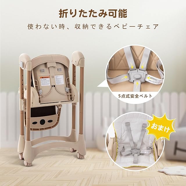 CHOZAN ベビーチェア 折りたたみ ハイローチェア 機能満載 取り外し可能なキャスター 五点式シートベルト 赤ちゃん椅子 キッズチェア 組立簡単 持運び便利 出産祝い 6か月~3歳(ベージュ)