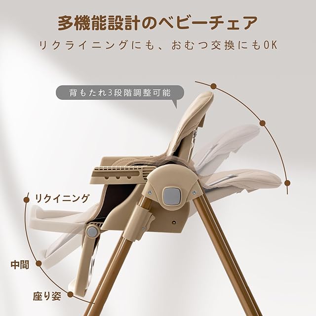 【背もたれ3段調整】座面のリクライニングの3段階調整設計により、赤ちゃんは食事、遊び、または小休憩時でも最も快適な姿勢を見つけることができます。