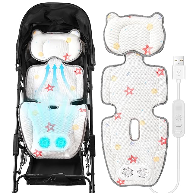MoSpace ベビーカーシート 夏 冷感 送風 ファン付き 3段階風量 タイマー機能 取り外し可能なヘッドレスト USB電源 ベビーカー チャイルドシート 保冷 洗える 尻の蒸れを解消 ベビーカー クッション クールシート 冷却シート マット 保冷シート カバー 夏用 熱中症対策 車 赤ちゃん 幼児 出産祝い (グレー)