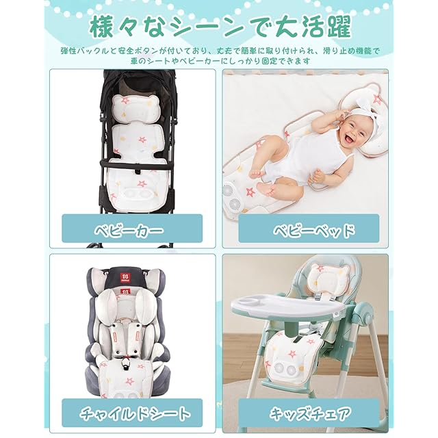 【汎用サイズ】汎用サイズ:32*90cm ベビーカーシート冷却パッドは、ほとんどのベビーカー、自動車シート、ベビーバスケット、ベビーカーやチャイルドシート、キャリー ワゴンやバウンサーにもお使いいただける設計です。また、新生児、赤ちゃん、または歩行児童をサポートします。軽量で取り付けやすい。